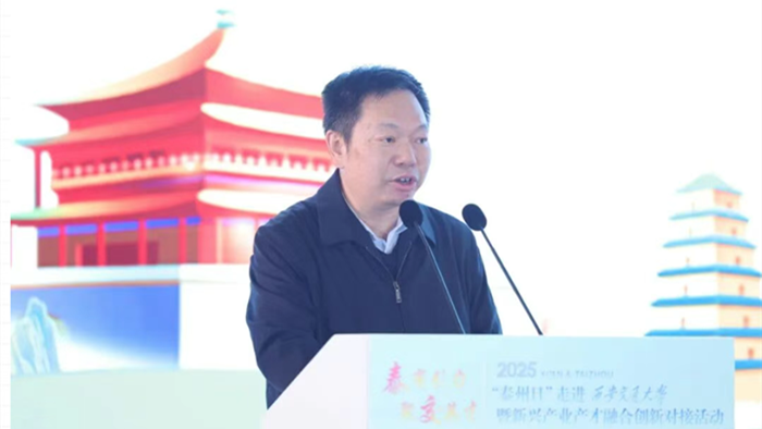 严俊杰在致辞时说,上世纪中叶,交大师生以实际行动铸就了西迁精神,为西部发展和国家建设作出了卓越贡献。新时代新征程上,西安交大广大师生在服务国家重大需求中挺膺担当,正努力谱写学校高质量发展新篇章。泰州市作为长三角中心城市之一,高端装备制造、新能源产业等布局与西安交大的学科优势高度契合,“泰有引力”人才生态更展现了城市尊才爱才、聚才用才的诚意与魄力。近年来,西安交大与泰州在科技创新、人才培养、成果转化等方面保持着良好的合作关系。此次“泰州日”走进西安交大,既是泰州对学校人才培养质量的认可,更是对校地合作未来的期许。希望同学们了解泰州、选择泰州、扎根泰州,在泰州这片干事创业的热土上书写青春华章。